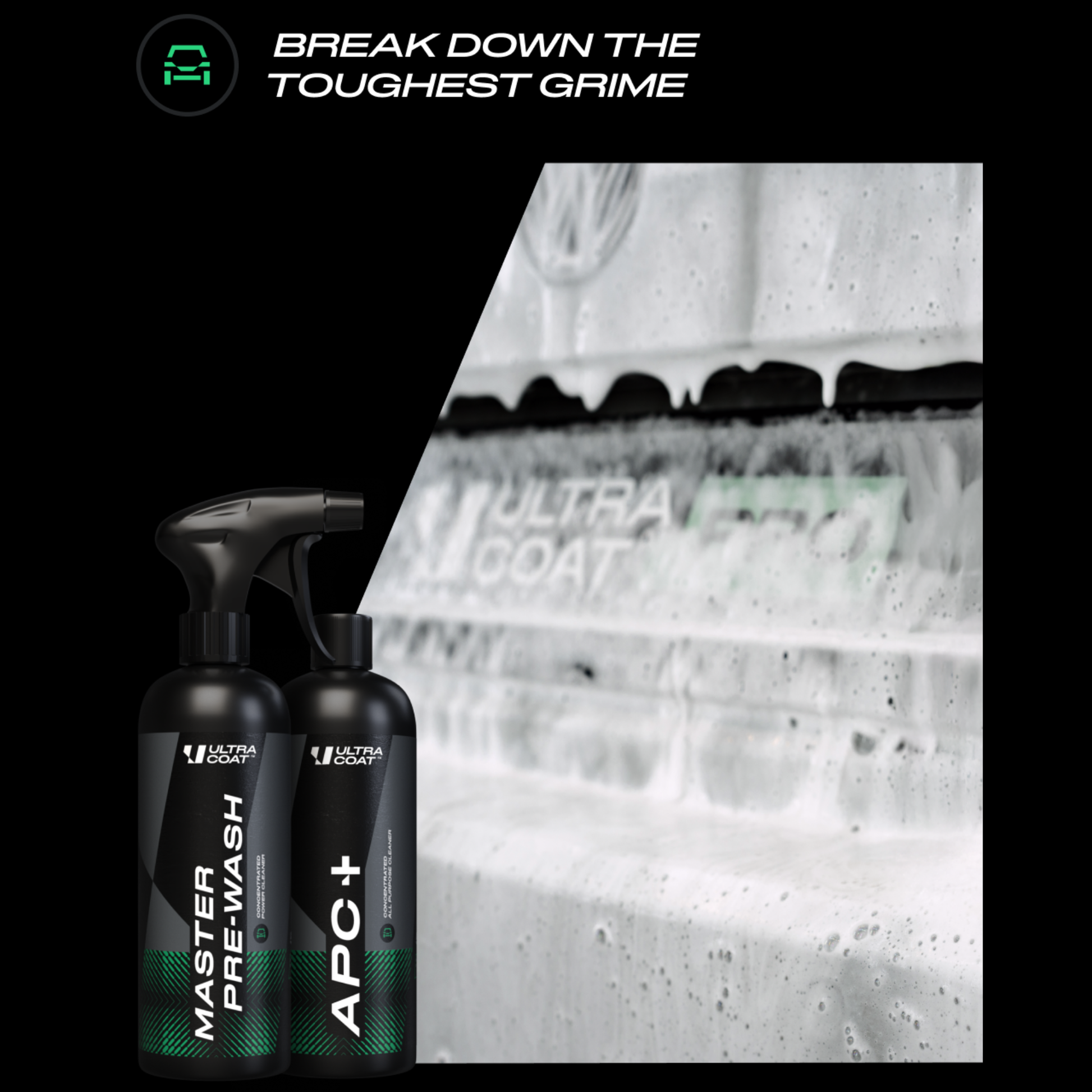 ULTRACOAT™ pre-wash products are developed to professional detailing standards. Final results depend on correct dilution, dwell time, and application technique.